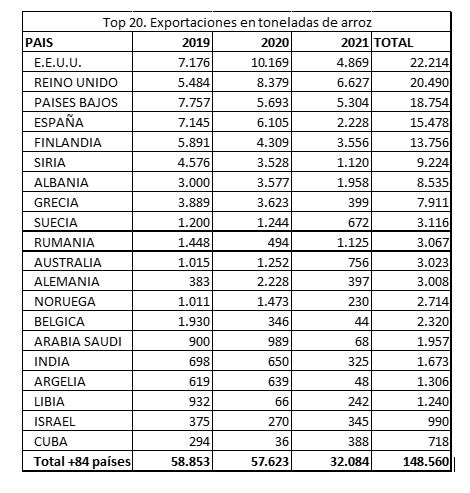 La capacidad del Puerto de València para conectar con más de 1.000 recintos portuarios de todo el mundo hace posible que los exportadores de arroz español puedan enviar su producto a lugares del Caribe como Cuba con 718 toneladas, Guadalupe con 505 toneladas o Martinica con 23 toneladas, o islas del océano Índico como Isla Reunión con 12 toneladas o una tonelada a Nueva Caledonia en el Pacífico Sur.