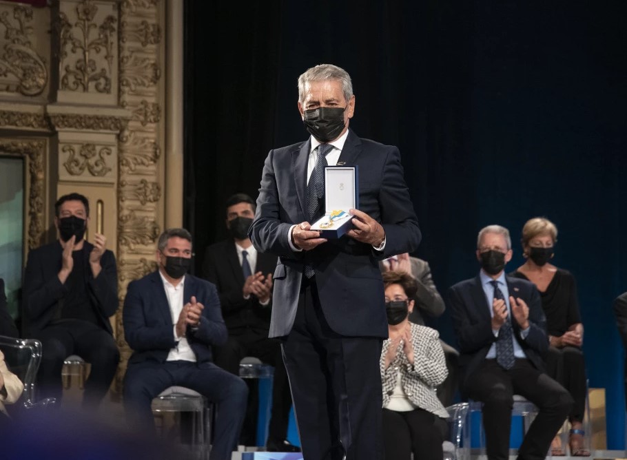 Antonio Armas Fernández, presidente de Naviera Armas Trasmediterránea, recibió de manos del presidente de Canarias, Ángel Víctor Torres, la Medalla de Oro de Canarias 2021, enmarcada en los actos del Día de Comunidad y en reconocimiento a los 80 años de existencia de la empresa.